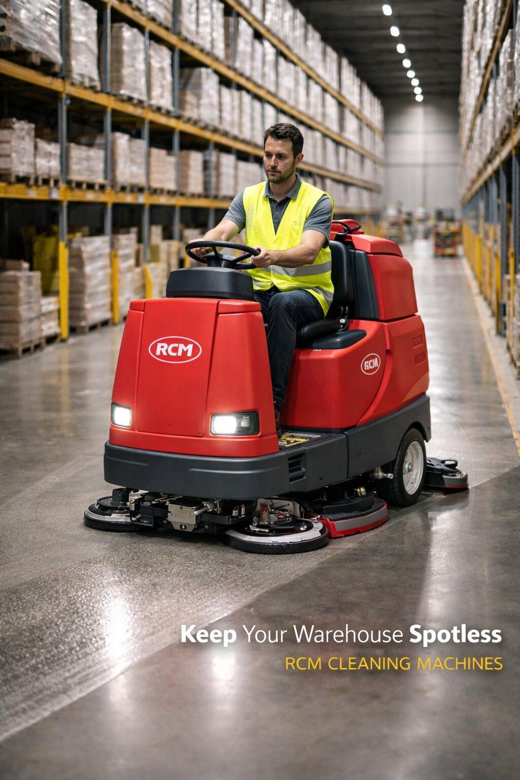- Logistica e industria: spazzatrici uomo a bordo per piazzali e capannoni.