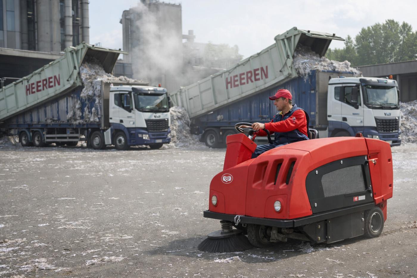 Nelle cartiere di Lucca, nei poli logistici e nei grandi stabilimenti, le spazzatrici uomo a bordo sono indispensabili. Consentono di lavorare su:
